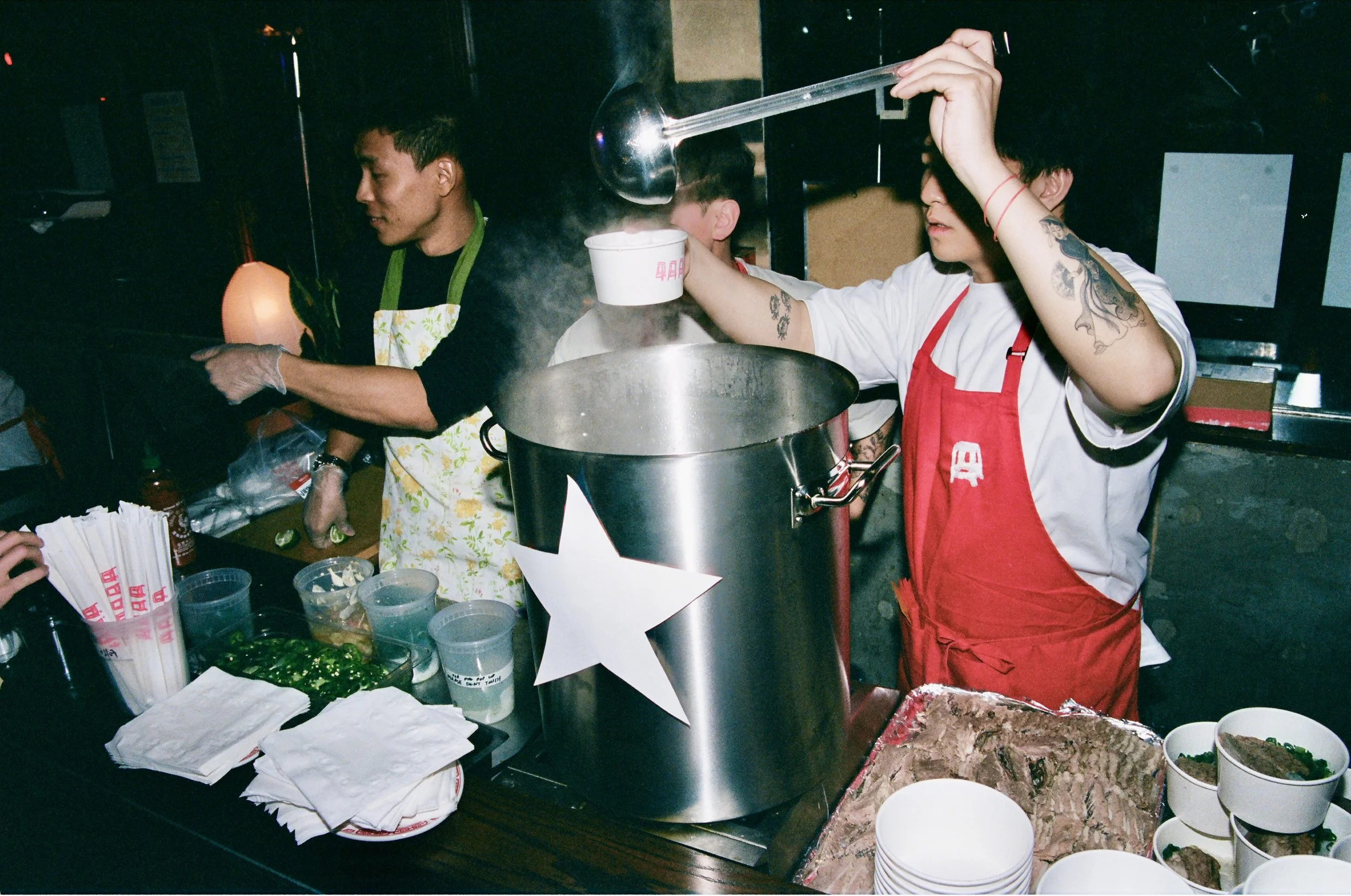 VN: I genuinely believe food and love are intertwined, and I've always wanted to show people that. Through cooking for loved ones, sensual food writing, and now pop ups. My first was "Beautiful Tiramisu club," investigating the correlation between hot people & loving tiramisu. And now this Pho-ndraiser about cultural pride and community. In New York, if you're insane enough you can make anything happen, and I kinda love that. It's a selfish excuse to gather my friends, indulge with them, and prove a point. This is only my second pop up and over 800 people wanted to come help me prove how food and love are intertwined. That's pretty cool.